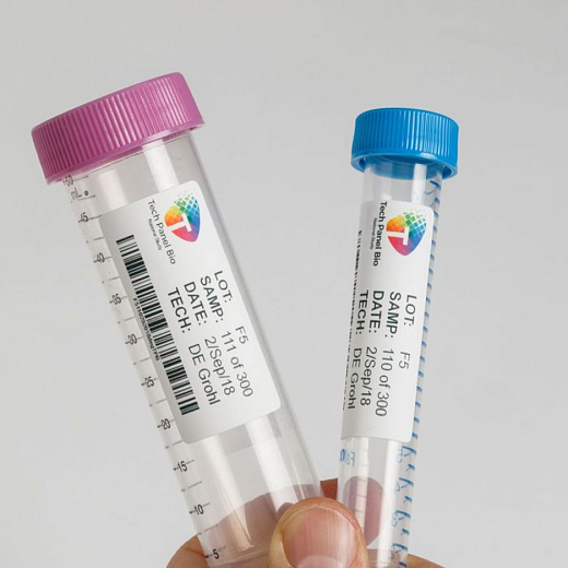 B-461 — полиэстер (самоламинирующийся). Выдерживает жидкий азот (-196°С), замораживание, кипячение (+100°С), автоклавирование (+121°C). Тонкий структурный профиль, предотвращающий деформацию и защемление этикетки при центрифугировании. Постоянный адгезив. Белая матовая зона для печати.