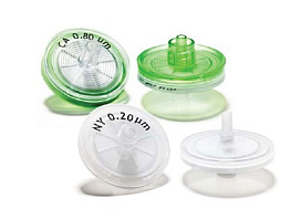 Шприцевые фильтрующие насадки представляют собой круглую мембрану, помещенную в полипропиленовый корпус (одноразовая насадка) или корпус из нержавеющей стали (многоразовая насадка). Шприцевые насадки имеют два соединяющих разъема: Female Luer Lock и Male Luer Slip, для работы со шприцами Luer и Luer-Lock. Выделяют стерильные (обработанные гамма-излучением) и нестерильные шприцевые насадки. При выборе шприцевой насадки следует обратить внимание на её диаметр и размер пор мембраны. Для фильтрации растворов объемом до 2 мл подойдут фильтрующие насадки с диаметром мембраны 4 мм. Для фильтрации объемов от 2 до 10 мл будет достаточно фильтрующей насадки с диаметром 13 мм, для фильтрации растворов более 10 мл следует выбрать фильтрующую насадку с диаметром 25, 30 или 33 мм. Мембраны с размером пор 0,1 мкм используются для удаления микоплазмы, с размером пор 0,22 мкм — для удаления бактерий; с размером пор 0,45 мкм — для очистки растворов, удаления крупных частиц и предочистки для стерильной фильтрации. Наиболее распространенными материалами для изготовления мембран являются: полиэфирсульфон (PES), стекловолокно (GF), гидрофильный или гидрофобный политетрафторэтилен (PTFE), гидрофильный или гидрофобный поливинилиденфторид (PVDF), ацетат целлюлозы (CA), смешанные эфиры целлюлозы (MCE). PES-мембраны обладают большой пропускной способностью и характеризуются низким связыванием белков. Мембраны из стекловолокна используют для очистки растворов, содержащих большое количество взвешенных частиц. Шприцевые насадки применяются в различных областях, например в хроматографии — для очистки и подготовки проб используются мембраны (нейлон, гидрофильный и гидрофобный PTFE, PVDF, нейлон, PES) с диметром пор 0,22 и 0,45 мкм; в аналитической химии — для очистки растворов от механических примесей, а также для очистки вязких и сильно загрязненных растворов используют мембраны (нейлон, PVDF) с диметром пор 0,2, 0,45 мкм; в микробиологии — для фильтрация белковых растворов и стерилизующей фильтрации малых объемов питательных сред используют мембраны (PES, PVDF, гидрофильный PTFE) с диаметром пор 0,22, 0,45 мкм. |