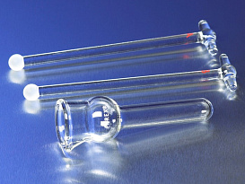 Гомогенизатор стеклянный обеспечивает гомогенизацию образца путем перетирания его пестиком о стенки пробирки или другой емкости, используется для гомогенизации, например, биологических тканей. Гомогенизаторы стеклянные состоят из пробирки и пестика, могут быть полуавтоматическими и ручными. Ручные гомогенизаторы используются для измельчения мягких образцов, сгустков и осадков; обработку можно проводить вручную или используя небольшой электропривод. Пестики могут быть сделаны из полипропилена, нержавеющей стали или боросиликатного стекла, а также политетрафторэтилена.
