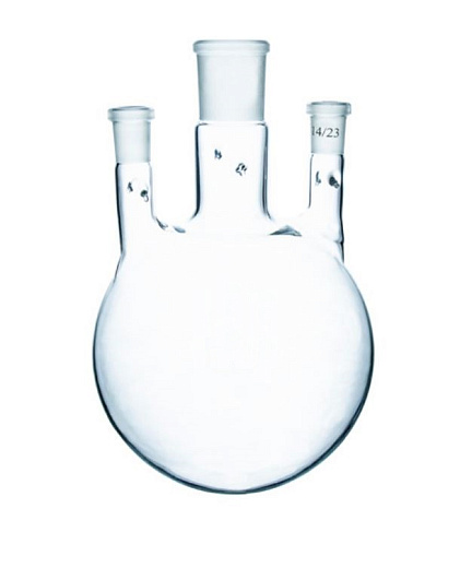 Колба трехгорлая, круглодонная, 4000 мл, с 3-мя вертикальными горловинами, 29/32 14/23 14/23, без зацепов, 1 шт., Россия, Россия |