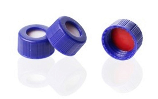 Крышка винтовая 9-425, ПП, с отверстием, голубая, с септой 9 мм красный PTFE/белый силикон, 1 мм, 100 шт./уп., Импорт, Импорт |