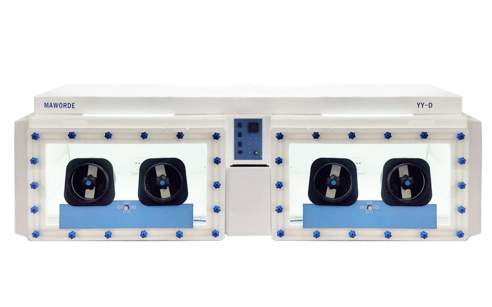 Анаэробные станции представляют собой изолированные перчаточные боксы, которые создают стабильные условия для анаэробного роста. В отличие от анаэростатов, эти станции позволяют проводить все этапы исследований, включая обработку, инкубацию и проверку образцов, не подвергая их воздействию кислорода из атмосферы. Температура, влажность и газовый состав внутренней атмосферы контролируются и поддерживаются в анаэробных станциях. Они работают от баллона с анаэробной газовой смесью, а для промывки рукава и шлюза используется азот для экономии анаэробной смеси.
