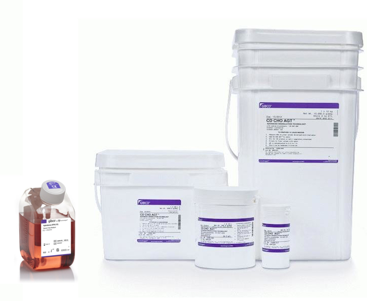 Компания Gibco (Thermo Fisher Scientific) разработала широкий спектр бессывороточных сред, которые не содержат продукты животного происхождения, для культивирования клеток в промышленных масштабах. Применение бессывороточных сред Gibco на производстве обеспечивает высокое качество продукта, его стабильность и безопасность, соответствии с требованиями GMP. Бессывороточные среды Gibco выпускаются как в жидкой форме, для работы с небольшими объёмами, так и порошкообразной и гранулированной форме (AGT), для приготовления сред объёмом от 10 л и выше.