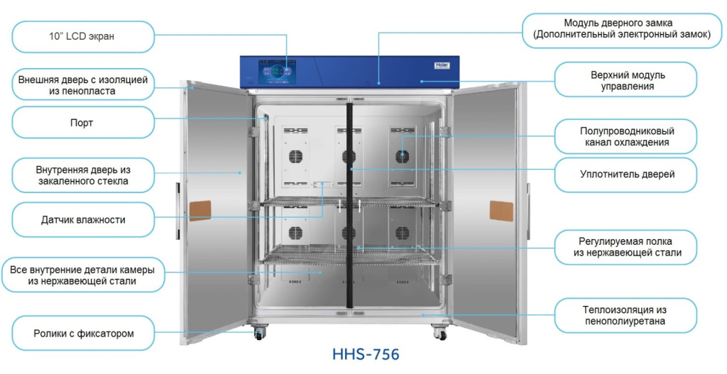 Камеры HHS, Haier идеальны для выращивания тканей растительного и животного происхождения, для оценки стабильности лекарственного сырья в соответствии с директивой ICH Q1A, косметики, оценки продуктов питания на срок годности, проведения испытаний на старение электронных элементов, тестов на стабильность упаковочных материалов.