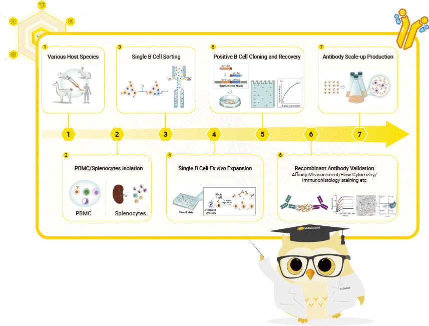 Запатентованная технология SMab, разработанная совместно компаниями ABclonal и Yurogen, устраняет это ограничение путем изоляции отдельных клеток, секретирующих антитела (B-лимфоцитов), от иммунизированных животных. Гены антител клонируются в высокоэффективные векторы экспрессии с точным контролем кодирующих последовательностей. Такой подход значительно повышает специфичность и чувствительность антител. Метод производства эффективно смягчает такие распространенные проблемы, как потеря генов, мутация генов и дрейф клеточных линий, обеспечивая постоянное качество антител между партиями и предоставляя исследователям высоковоспроизводимые экспериментальные результаты.