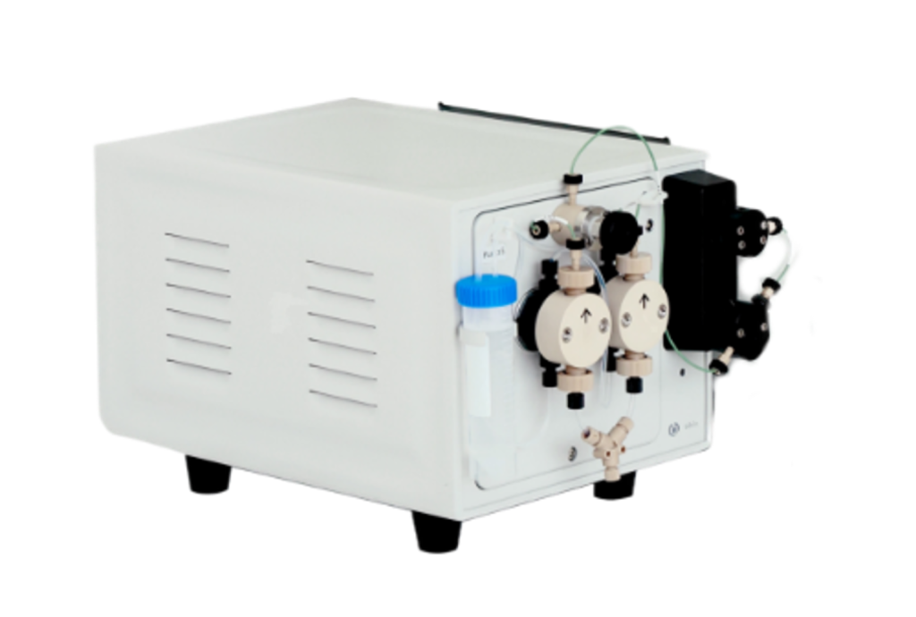 В базовой комплектации – один плунжерный насос до 150 мл/мин с тремя портами для подачи буферных растворов, клапан для ввода образца, оптический модуль с возможностью детекции на 2 длинах волн в диапазоне от 200 до 400 нм и кондуктометр. Хроматограф поставляется с ПО Chiron и ПК.