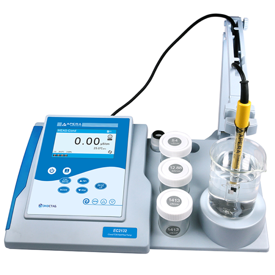 автоматический режим калибровки с пошаговым руководством и самодиагностикой, автоматическое распознавание восьми стандартных растворов электропроводности.
